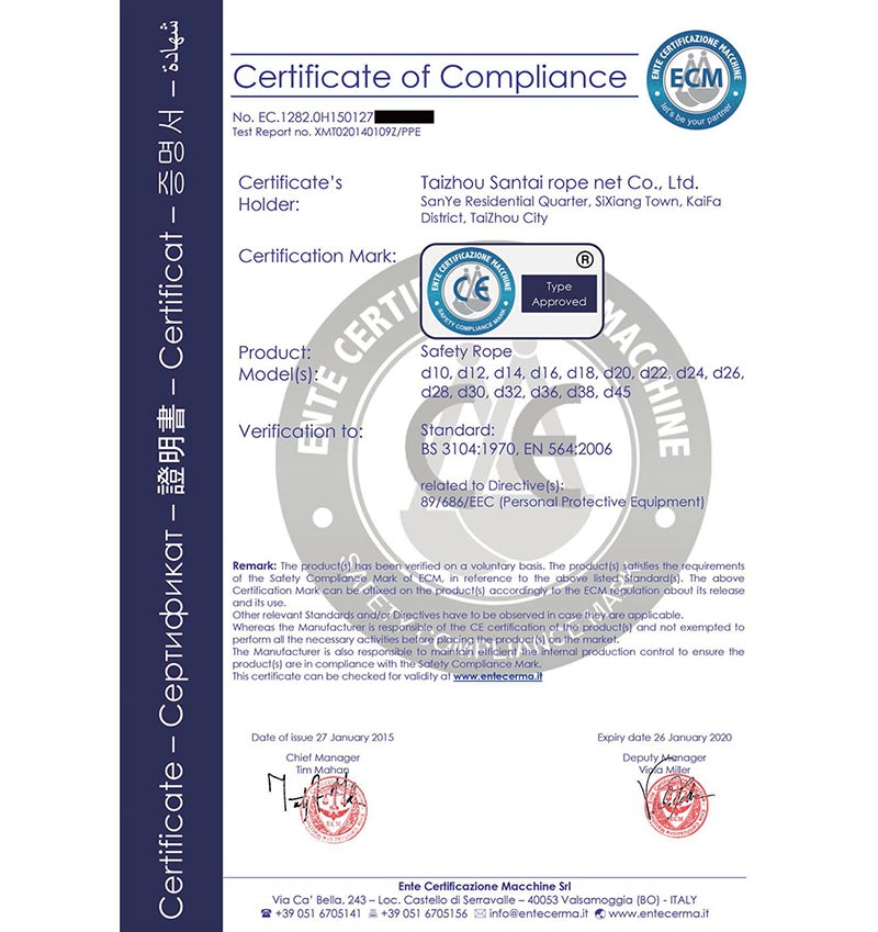 泰州市三泰健康科技有限公司(原 泰州市三泰繩網(wǎng)有限公司),本公司成立于1988年12月22日,至今近30年的生產(chǎn)歷程。多年來的生產(chǎn)經(jīng)驗(yàn),加之我們不斷的創(chuàng)新,已經(jīng)建設(shè)成為集研制、開發(fā)、生產(chǎn)、銷售為一體的龍頭企業(yè)。公司生產(chǎn)線由捻線車間、制繩車間、織網(wǎng)車間、織帶車間、織(絞)繩車間、安全網(wǎng)組裝車間、安全帶組裝車間、檢驗(yàn)室等組成。企業(yè)現(xiàn)有職工155人,企業(yè)管理人員6名,市場(chǎng)研發(fā)人員8名,專業(yè)質(zhì)檢人員2名,......